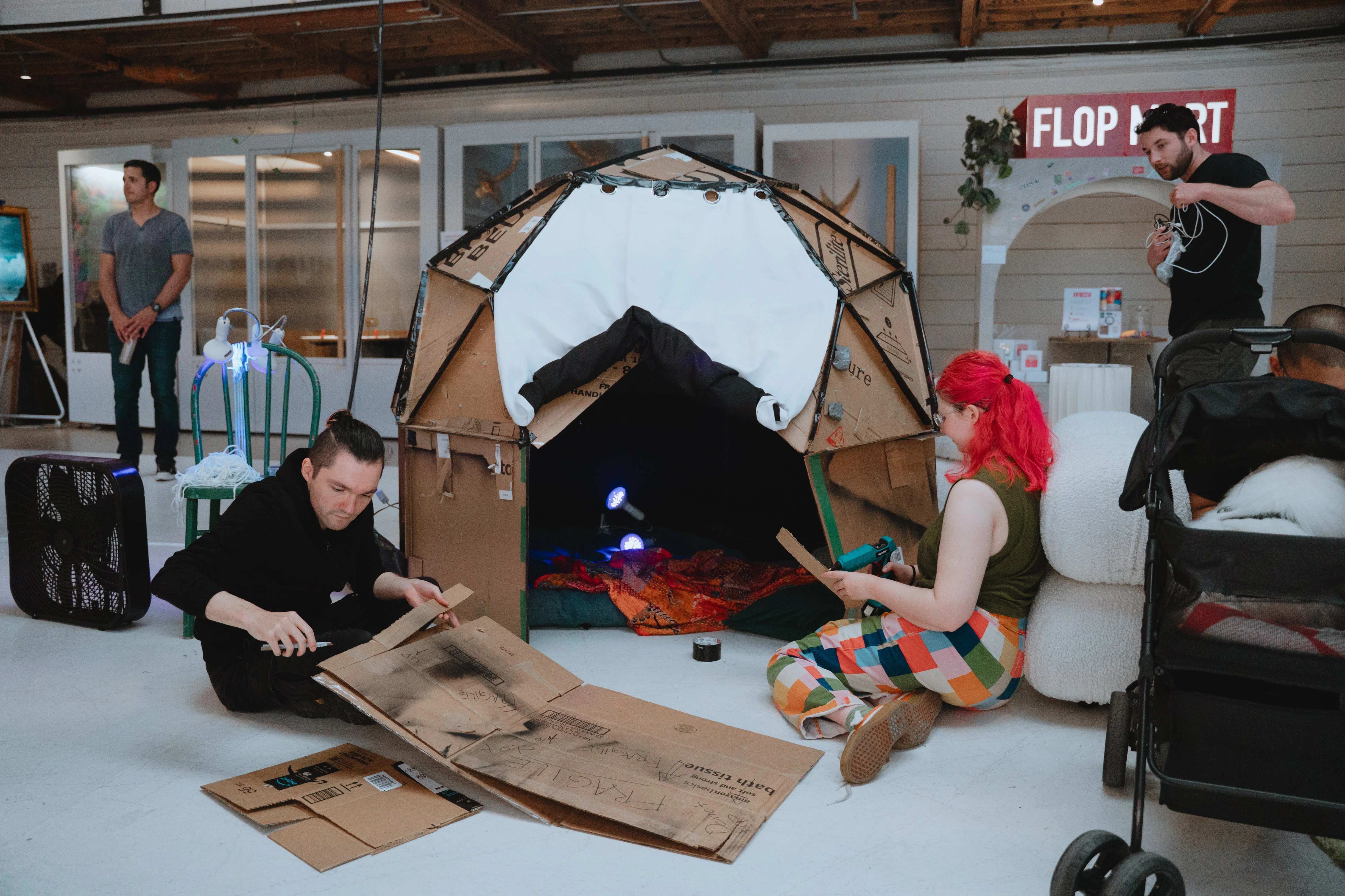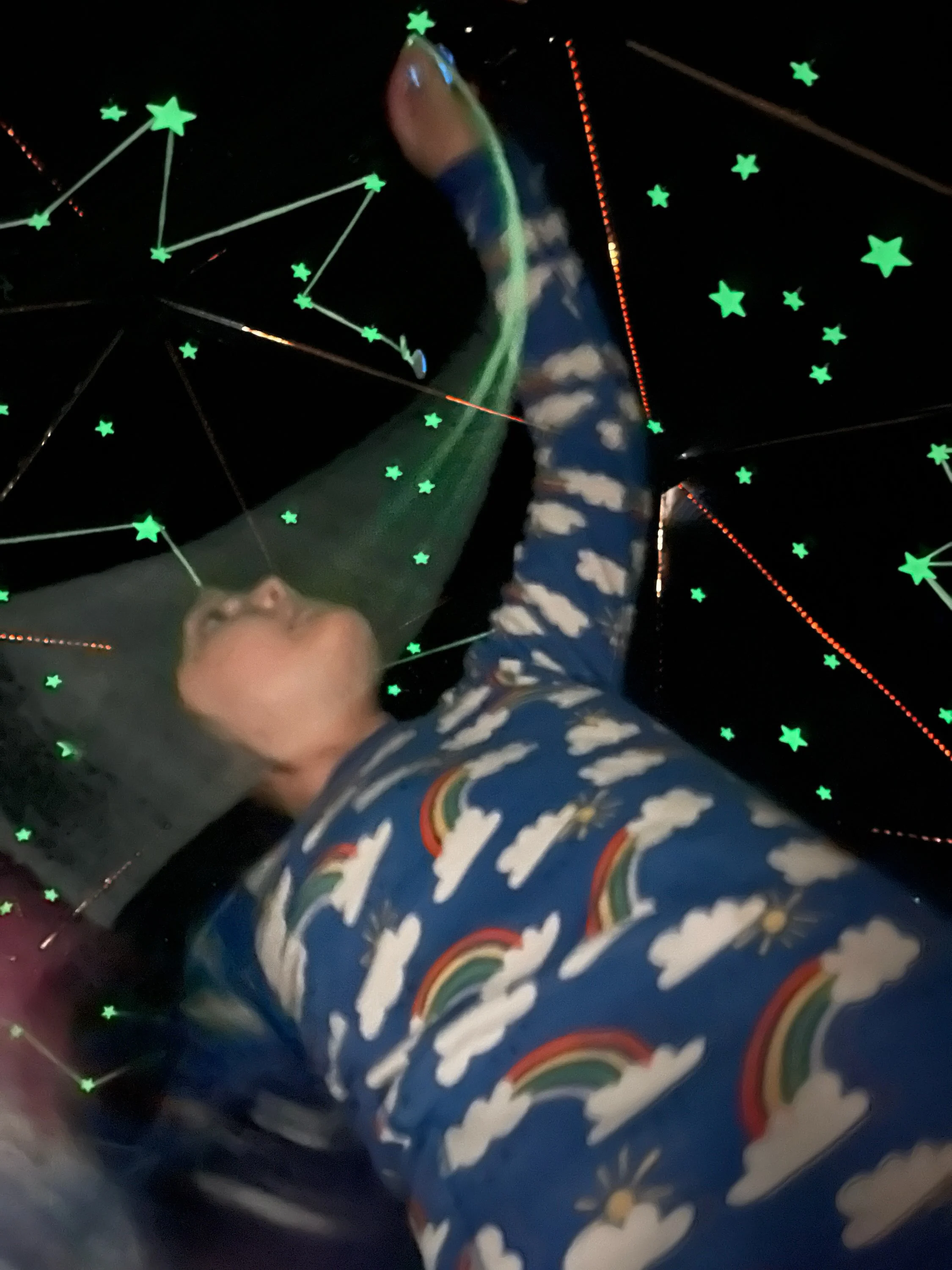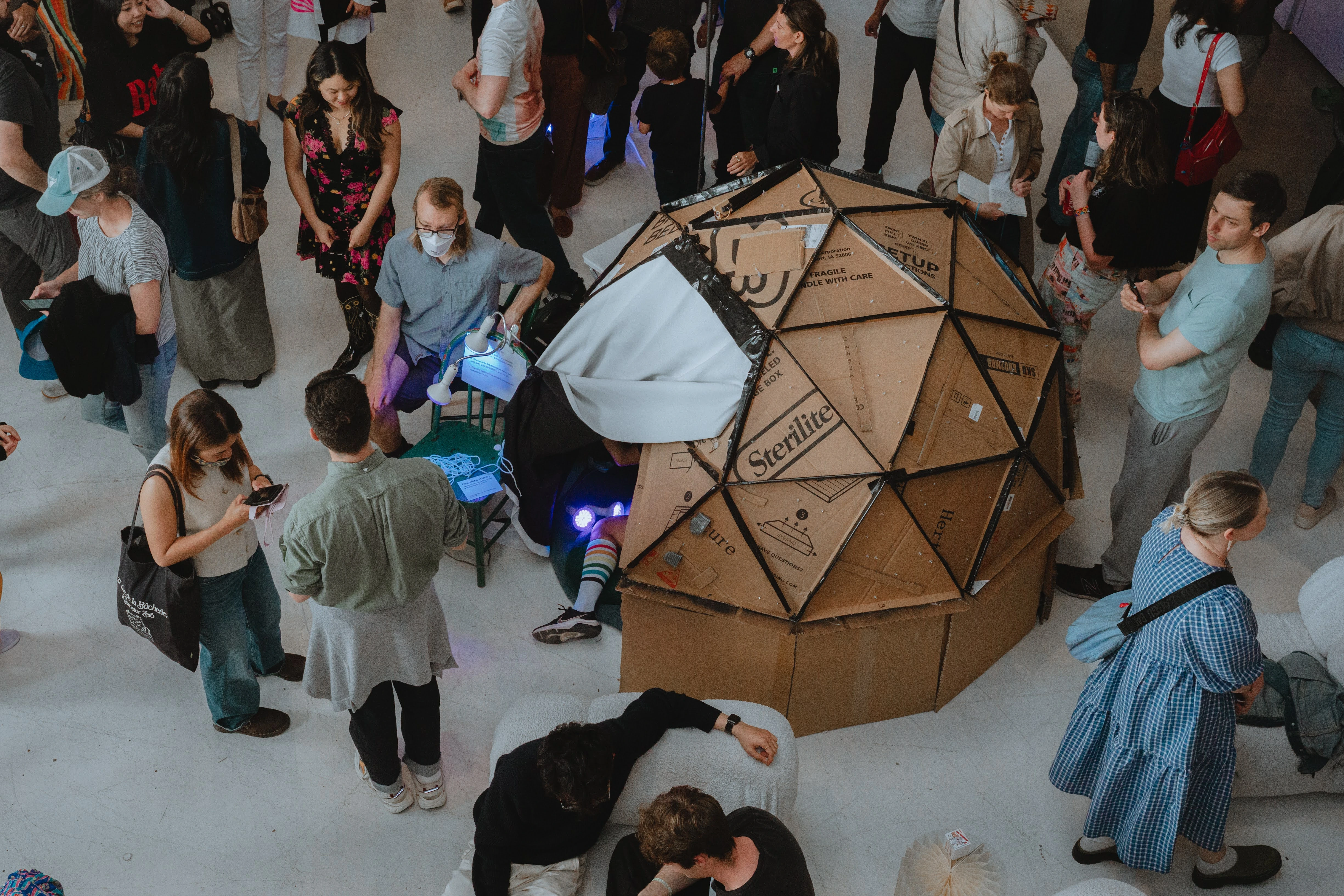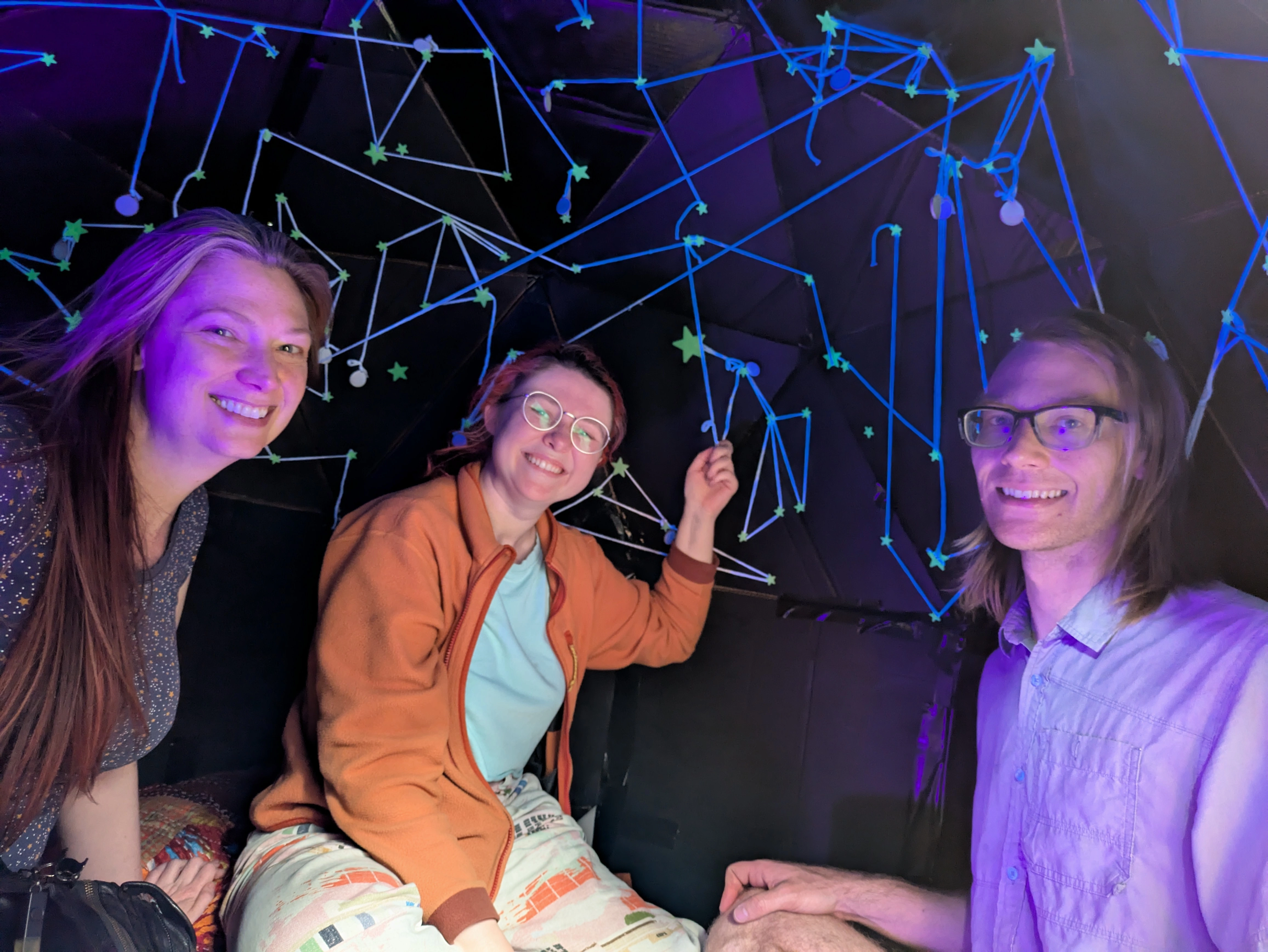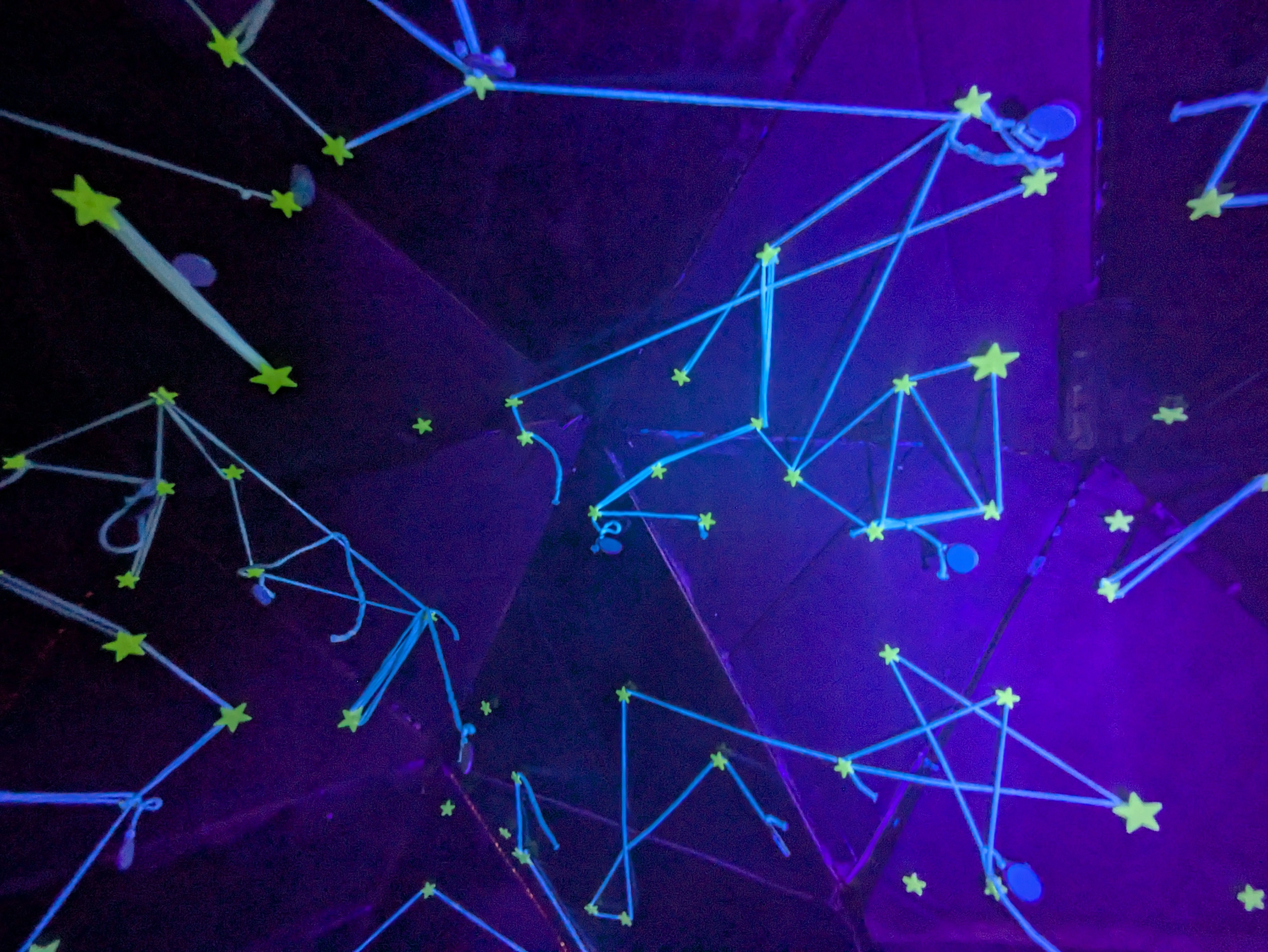 A geodesic dome where participants could create their own constellations with string in a sky of glow-in-the-dark stars.